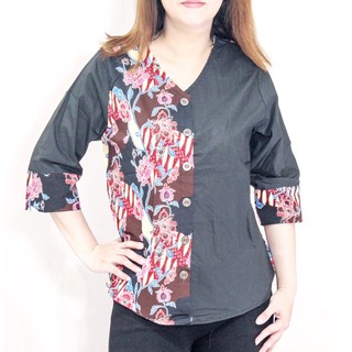 Model baju batik berikut ini bisa kamu kenakan ketika menghadiri sebuah acara, entah itu pesta pun acara resmi. Ya, model baju batik kombinasi yang satu ini cocok sekali jika anda kenakan untuk pergi ke acara formal apalagi jika anda berhijab. Bagian batik diletakkan pada bagian rok dan untuk atasannya digunakan baju hitam polos. Model baju batik wanita kombinasi kini telah hadir dengan desian yang lebih elegan. Belahan baju dengan kancing yang tidak simetris ini sangat menonjolkan model batik.